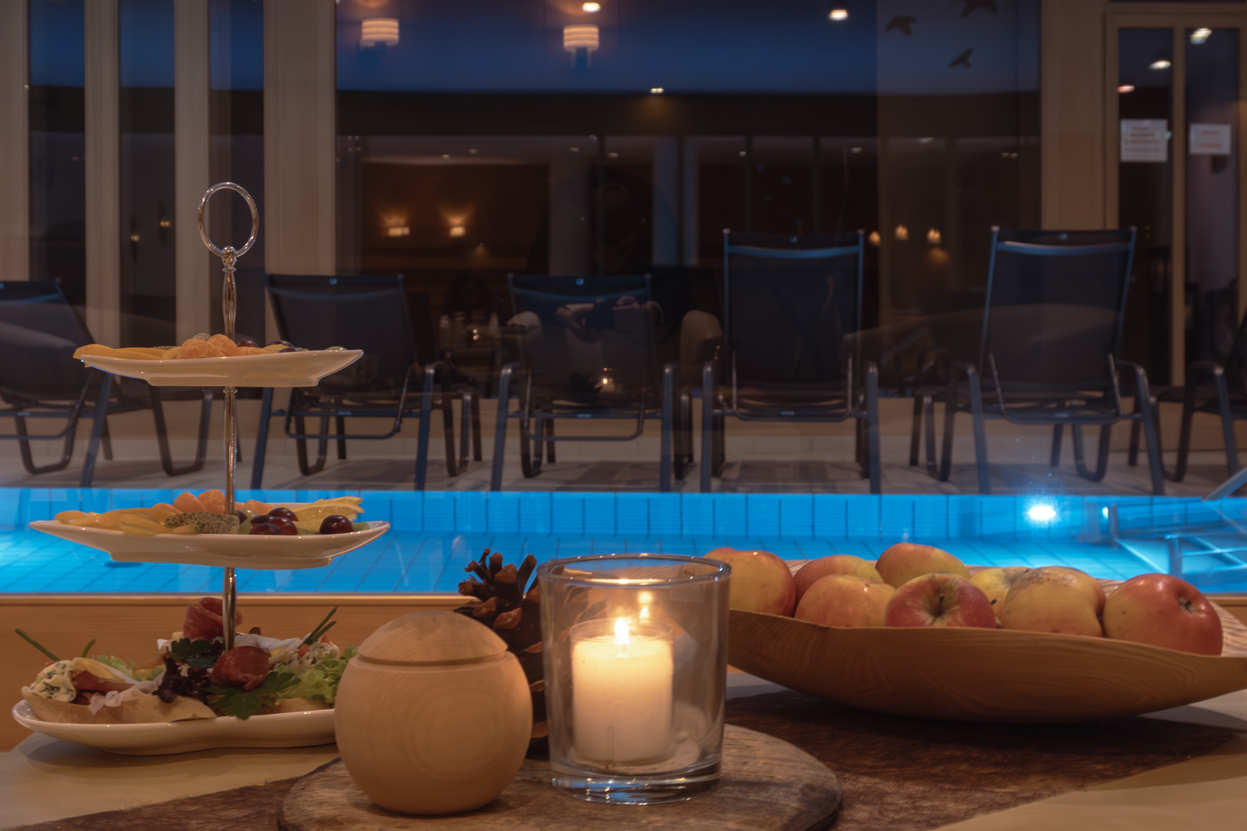 Genießen Sie unseren Hochtal SPA im Kerzenschein mit Sekt & Snacks.